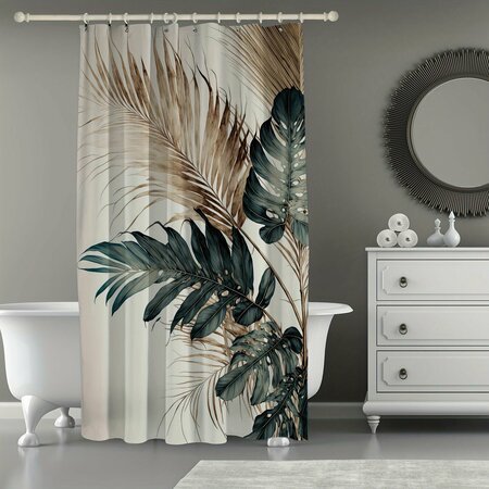Штора для ванной тканевая с принтом "Папоротник", белая, коричневая, 180x180см, водонепроницаемая, кольца в комплекте