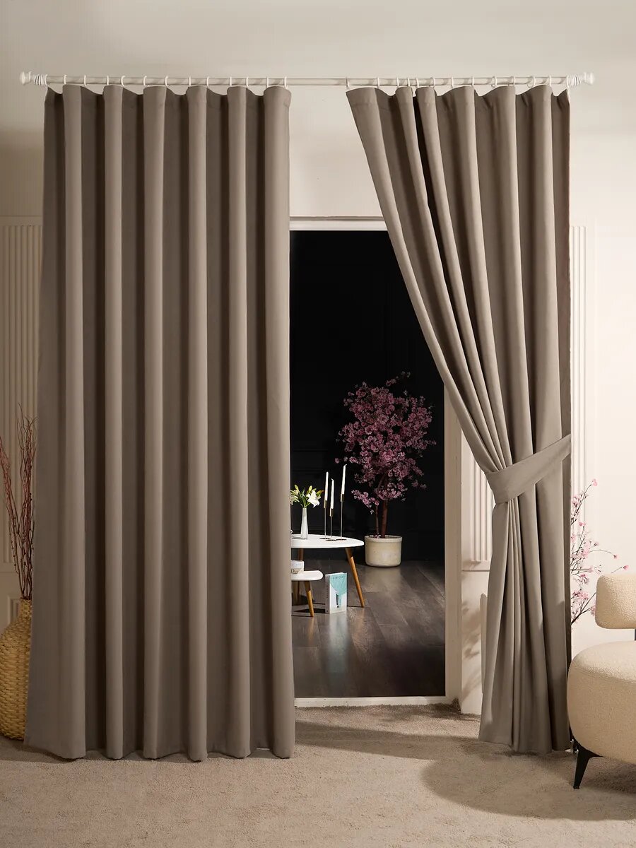 Достоинства:Очень красивый цвет, мягкие, блэк аут. В комплекте шли подхваты для штор. Комментарий:Цвет, как на 2 фото, первое фото для видимости в длину (проблемы засвета на камере телефоне)