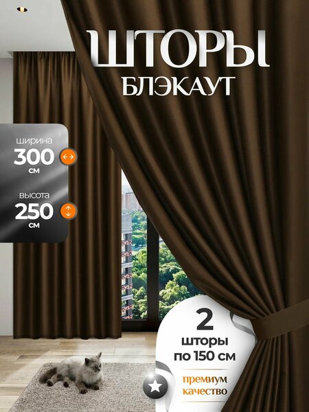 300 x 250 см · блэкаут · на ленте · 2 шт. · коричневый, шоколадный