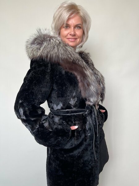 Мутоновый полушубок со вставками из меха норки с капюшоном. На капюшоне богатая отделка мехом чернобурки. Пояс в комплекте. Два боковых кармана. Застежка на шубные крючки. Состояние очень хорошее, Могут иметься незначительные (не критичные, но все же заметные) следы носки. Замеры шубы: плечи - 44 см, рукав - 63 см, объем груди - 92 см, талия - 88 см, объем бёдер - 96 см, длина - 85 см. Размеры девушки-модели на фото: рост 160 см, объем груди 96 см, объем бедер 100 см