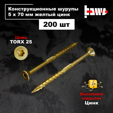 Конструкционные саморезы по дереву широко применяются для скрепления несущих деревянных конструкций и каркасов, монтажа стропильных и подстропильных систем, балок, ферм, перекрытий и других силовых опор. Благодаря специальному способу закалки саморезы обладают особой прочностью и могут закручиваться в твёрдые сорта древесины без предварительного засверливания, при этом сохраняют пластичность и при сезонном колебании влажности древесины могут изгибаться, сохраняя прочность соединения. Профессиональные конструкционные шурупы по дереву имеют ряд важных особенностей и преимуществ: Ускоряют процесс монтажа. Не расщепляют древесину. Не требуют предварительного засверливания. Глубокое гнездо Torx для уверенного вкручивания и оптимального распределения усилия от насадки. Режущие ребра головки облегчают ее ровную посадку по отношению к уровню поверхности материала. Длинная фреза расширяет отверстие, приводя к заметному снижению момента силы, необходимого для вкручивания. Зарубка на резьбе шурупа дробит стружку, образующуюся при установке, и предотвращает расщепление древесины. Большой шаг резьбы гарантирует быстрое закручивание самореза. Дополнительные режущие кромки на наконечнике облегчают вкручивание. Качественная закаленная сталь обеспечивает высокую прочность и долговечность соединения.