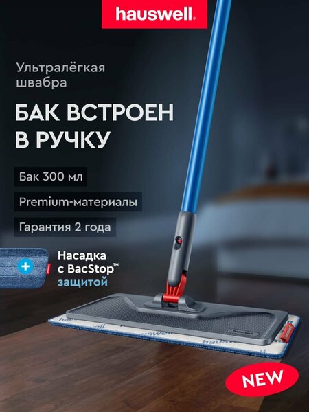 Швабра с распылителем SprayPro Lite — это универсальное решение для быстрой уборки. Созданная с учетом современных потребностей, эта умная швабра для бесконтактного мытья полов, стен, потолка, плинтусов станет хорошим помощником в вашем доме. Со SprayPro Lite обычная влажная или сухая уборка превращаются в приятную и ленивую задачу. С мультишваброй будущего Вам больше не нужны ведра с водой, хозяйственные тряпки и и ручной, механический отжим для идеальной чистоты дома. Вертикальная швабра - выручайка для пола оснащена баком 300 мл, что позволяет легко заливать в него воду с моющим средством. Легкая тонкая металлическая premium ручка обеспечивает маневренность и комфорт, позволяя добраться до самых труднодоступных мест комнаты без лишних усилий. Механизм распыления с дозатором позволяет регулировать подачу воды полотера. С помощью автоматического пульверизатора можно контролировать, сколько жидкости наносится на поверхность, что особенно актуально для ламината и паркета. Телескопическая длинная ручка позволяет легко маневрировать профессиональной шваброй - лентяйкой подросткам, женщинам и всем членам семьи, даже под мебелью в помещениях. Впитывающая насадка легко крепится на широкое основание по принципу smart липучки. Её уникальная структура включает в себя высококачественную микрофибру, которая поглощает и удерживает влагу, исключая появление разводов, что делает её незаменимой для клининга. Специальное покрытие быстро захватывает пыль, грязь и мелкий мусор, а дополнительные ворсовые нити по краям создают супер - эффект “ антишерсть ” и собирают волосы и шерсть животных с пола. Чудо насадка и спрей mop с распрыскивателем - классический набор для качественной уборки. Вы можете защитить свою бесконтактную смарт швабру выручалку от любых поломок и брака, активировав гарантию на 2 года, на нашем сайте. Даже если поломка произошла в ходе эксплуатации, мы бесплатно отправим запасную деталь. Инструкция по активации гарантии на наши хозяйственные товары внутри коробки.