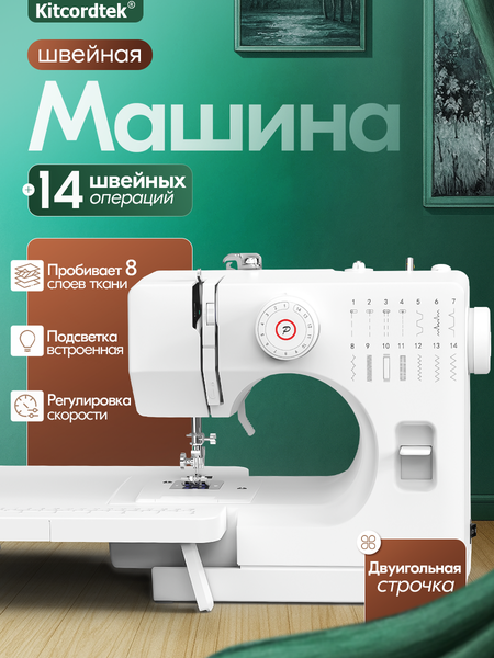 Швейная машинка электрическая KTC-9905, двуигольная строчка, с педалью и столиком, 14 видов строчек