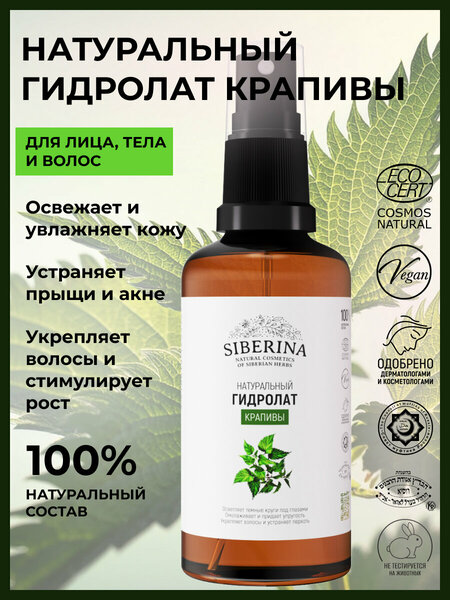 {"widgets":{"@card/VerifiedBadge":{"/content/page/fancyPage/defaultPage/verifiedBadge":{"wrapperProps":{"margins":{"bottom":"3"}},"badges":[{"style":"BG_INVERT_PRIMARY","text":"Оригинал","showChevron":false,"popupInfo":{"title":"Оригинал","items":[{"text":"Так отмечаются товары, по которым продавцы предоставили документы об оригинальности"}]},"zoneData":{"text":"Оригинал","type":"text"}}],"isUltimaKM":false,"footerButtonText":"Понятно"}}},"meta":{"/content/page/fancyPage/defaultPage/verifiedBadge":{"name":"@card/VerifiedBadge"}},"collections":{"offerAnalytics":{"4126658023000617639":{"showUid":"17718242376367735476406001","promoAttributes":[{"shopPromoId":"price_increase_promo_544201","promoType":"unknown","promoKey":"JkNFoI-Yhpwfqko8UdgnOQ"},{"shopPromoId":"cf_135726","promoType":"empty-promo","promoKey":"xD1-78LDt8ve5lk-5jj0FQ"}],"wareId":"PddiYiMXcIXnw1992HuueQ","modelId":"245463195","marketSku":"100493272991","paymentMethodTypes":["deliverycard","deliverycash","prepaymentcard"],"isCrossBorder":true,"isOnDemand":true,"isSponsored":false,"skuId":"100493272991","oskuId":"103193002694","marketSkuCreator":"market","price":100330,"oldPrice":112892,"merchPrice":107516,"vendorId":14260433,"hid":63989416,"nid":63998256,"isDigital":false,"deliveryPartnerTypes":["YANDEX_MARKET"],"offerColor":"blue","productId":245463195,"feedId":681848,"availableCount":5,"shopId":431782,"supplierId":544201,"shopSku":"GDL(17)-SIB","isExpress":false,"warehouseId":172,"isBnpl":true,"isInstallments":false,"businessId":"53356813","paymentTypes":["POSTPAYMENT","PREPAYMENT"],"benefit":{"type":"waremd5","isPrimary":true,"description":"Хорошая цена от надёжного магазина"},"yandexBnplInfo":{"enabled":true},"isBondAvailable":false,"isDSBS":false,"promos":[{"key":"JkNFoI-Yhpwfqko8UdgnOQ","type":"unknown","shopPromoId":"price_increase_promo_544201","landingUrl":"https://market.yandex.ru/special/price-increase-promo-landing?shopPromoId=price_increase_promo_544201","isPersonal":false},{"key":"xD1-78LDt8ve5lk-5jj0FQ","type":"empty-promo","shopPromoId":"cf_135726","landingUrl":"https://market.yandex.ru/special/empty-promo-landing?shopPromoId=cf_135726","isPersonal":false,"description":"Новые_акции_для_лендингов_полок_УЗБ_Beauty_1201"}],"prices":{"price":{"value":100330,"currency":"UZS"},"priceWithoutVat":{"value":100330,"currency":"UZS"},"discountedPrice":{"price":{"value":100330,"currency":"UZS"},"discount":{"value":12562,"currency":"UZS"},"percent":11}},"supplierType":"3","pp":200,"gci":"103193002694","title":"Siberina Натуральный гидролат крапивы, 50 мл"}},"vendorDoc":{"4126658023000617639":{"verified":true}},"badges":{"4126658023000617639":{"gallery":["bi_8266655855392218655"],"train":[]}},"badgeItem":{"bi_8266655855392218655":{"style":"BADGE_PROPERTY_PRIMARY","type":"text","text":"ОРИГИНАЛ","popupInfoId":"pp_3667891250342019889","showChevron":true,"analytics":{"type":"originalBadge","text":"ОРИГИНАЛ","position":0}}},"popupInfo":{"pp_6993192843758516824":{"type":"onClickSignal","params":{"title":"Когда заказ приедет из-за рубежа, курьер привезёт его по клику","items":[{"label":"Назначим точную дату доставки","text":"Когда заказ пройдет таможню","icon":"calendar"},{"label":"В день доставки напишем, что можно вызвать курьера","text":"На это будет 3 дня","icon":"bell"},{"label":"Нажмите кнопку, и курьер приедет","text":"В течение 15–30 минут","icon":"click"}],"actions":[{"text":"Понятно","type":"close","theme":"normal"}]}},"pp_1120597706417580457":{"type":"crossborderSignal","params":{"title":"Доставка из-за рубежа","text":"Для таможни понадобятся паспортные данные и ПИНФЛ получателя. Их запросит Market или продавец.\n\nЗарубежные заказы общей стоимостью до $200 за календарный месяц пошлиной не облагаются.\n\nПри исчерпании лимита пошлина составит 30% от суммы превышения. Смс для оплаты придёт в день прибытия товаров на таможню.\n\nВ течение полугода рекомендуем покупать не больше 2 одинаковых товаров. Это связано с таможенными ограничениями для физических лиц.","actions":[{"text":"Узнать больше","type":"link","link":"https://yandex.uz/support/market-yandex-go/customer/ru/cross-border","theme":"normal"},{"text":"Понятно","type":"close","theme":"action"}]}},"pp_3667891250342019889":{"params":{"title":"Оригинал","items":[{"text":"Так мы отмечаем товары популярных брендов, если продавец предоставил документы об оригинальности"}]}},"pp_15773598120700656811":{"type":"priceDetails","params":{"priceDetails":{"title":"Siberina Натуральный гидролат крапивы, 50 мл","prices":[{"value":{"content":[{"type":"price","value":"100330.000000","unit":"сум"}],"feature":"RED_PRICE"},"subtitle":{"content":[{"type":"literal","value":"цена на товар"}],"feature":"SECONDARY_RED"}}],"discountDetails":[{"label":{"content":[{"type":"literal","value":"Обычная цена"}],"feature":"DETAIL_LABEL"},"value":{"content":[{"type":"price","value":"112892.000000","unit":"сум"}],"feature":"DETAIL_VALUE_CROSSED"}},{"label":{"content":[{"type":"literal","value":"Скидка "},{"type":"price","value":"11","unit":"%"}],"feature":"DETAIL_