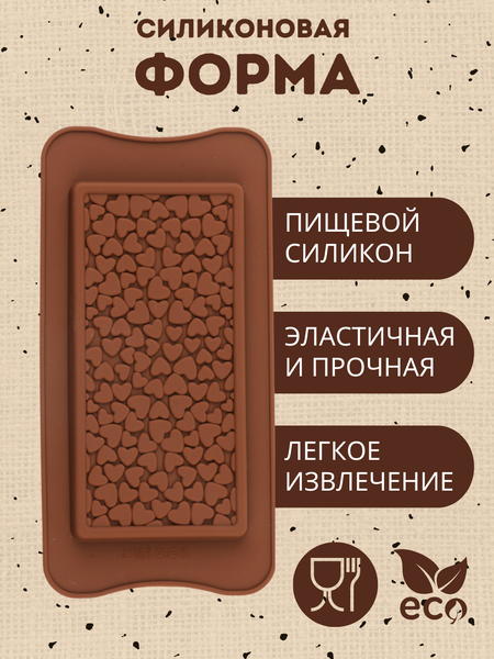 Форма силиконовая "Сердце", для шоколада, мармелада, выпечки, конфет, льда, пищевой силикон, без запаха и без токсинов, легко извлекать готовое изделие. Силиконовые формы для конфет и шоколада - это идеальный выбор для создания уникальных и вкусных лакомств. Эта форма изготовлена из высококачественного пищевого силикона, который обладает такими свойствами как: термостойкость (форма выдерживает температуры от -40°С до + 240°С), гибкость и износостойкость, антипригарные свойства, а также способность не впитывать посторонние запахи. Это делает ее универсальным инструментом - форму можно использовать для заморозки и выпечки, и для приготовления оригинальных конфет, шоколада и декора для кондитерских изделий. Готовые изделия легко извлечь, не обязательно использовать масло. Она компактна, ее удобно хранить и легко мыть. С помощью силиконовой формы вы сможете создавать изысканные десерты, которые вызовут истинное восхищение и восторг!