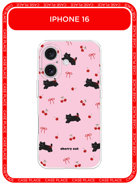 Силиконовый чехол на Apple iPhone 16 / Айфон 16 с принтом cherry cat