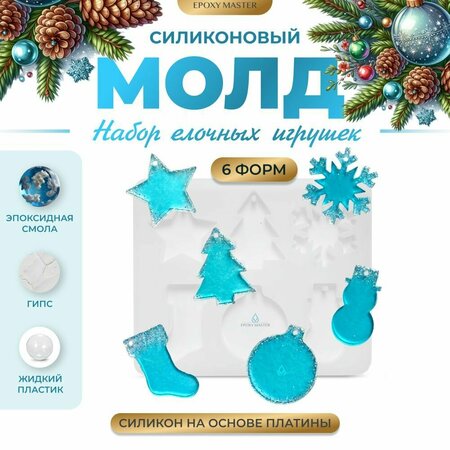 Силиконовый молд Набор елочных игрушек для эпоксидной смолы EPOXYMASTER, новогодние украшения своими руками
