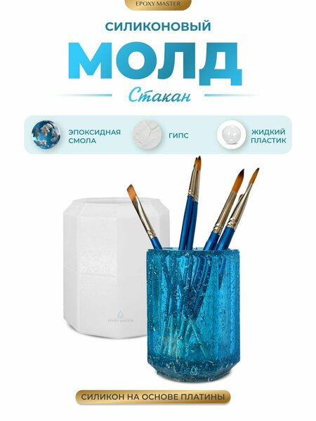 Силиконовый молд стакан от бренда Эпоксимастер (SM453) идеально подходит для работы с различными материалами, такими как эпоксидная смола, гипс, бетон, цемент и пластик. Форма для гипса прекрасно выдерживает высокие температуры (до 220 градусов). Благодаря гибкости и эластичности силиконовой формы, готовое изделие легко извлечь, не повредив при этом молд для гипсовых изделий. Эта формочка поможет тебе создать подарок своими руками, который будет радовать получателя долгие годы. Всего лишь немного мастерства и фантазии, и ты сможешь создавать уникальные предметы, для себя и окружающих на каждый день. Изготовление предметов с помощью силиконового молда для эпоксидной смолы - это просто и увлекательно: заполни его выбранным материалом, дай время полностью высохнуть, а затем достань готовое изделие. Многоразовая силиконовая форма для цемента легко моется и может использоваться многократно, позволяя тебе воплотить все свои идеи в жизнь. Познакомьтесь с другими товарами бренда Эпоксимастер, чтобы выразить свою индивидуальность. Размер молда карандашница: d7,8 х 9,8 см Размер готового изделия: d7,3 х 9,4 см Необходимый объем смолы для заливки: ~ 200 грамм