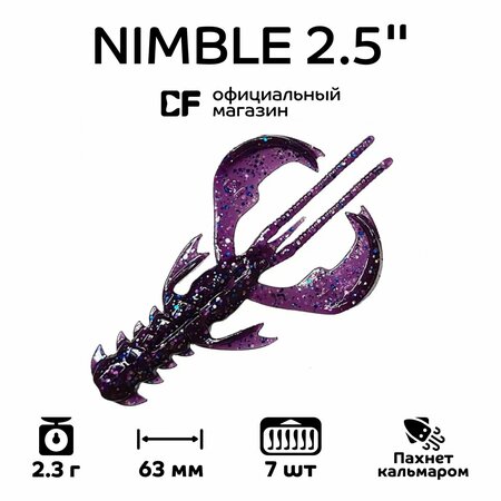 Crazy Fish Nimble 2.5” — рак с активными клешнями, которые после попадания в водоём сразу начинают попеременно или синхронно колебаться даже во время одной проводки в зависимости от потоков воды. Этот эффект оживляет приманку, провоцирую хищника на атаку. Хаос в движениях убегающей добычи, натуралистичность, беспрерывная размашистая работа без сбоев — в этом преимущество «Нимбла» перед виброхвостами и слагами в аналогичном размере. На каких оснастках его применять? Наилучший результат приманка показывает на классических джиговых монтажах с джиг-головкой или «чебурашкой», но благодаря боковым лапам-стабилизаторам и выверенной геометрии тела, с огромным успехом применяется и на неогруженных монтажах с открытым крючком или офсетом. Отводной поводок, Dropshot, Carolina rig, Texas rig — это его стихия. Nimble работает на всех стадиях проводки, в том числе при медленном свободном падении, «вкусно» размахивая лапами и покачивая всем телом, она очень активна на подъеме приманки и конечно же в толще воды, при равномерной проводке.