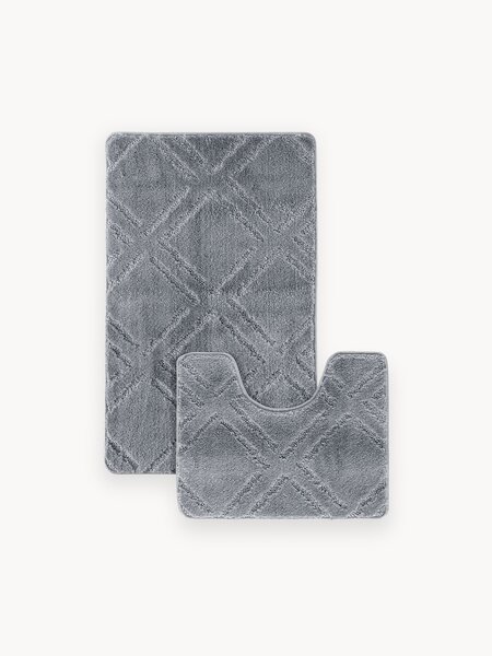 Турецкие коврики для ног - это незаменимая вещь в доме и гарантия качества текстиля. Они изготовлены из полипропилена и имеют противоскользящую основу из натурального латекса, что обеспечит безопасность на полу. Коврик для туалета имеет вырез под унитаз. Его размер 50х40 см. Коврик для ванной 50х80 см - прямоугольной формы. Комплект прекрасно впишится в любой интерьер небольшой ванной комнаты и туалета. Они отлично впитывают влагу и быстро сохнут. Имеют мягкий плотный ворс разной высоты и фактуры. Высота ворса 11 мм, плотность 1350 гр/м2. Просты в уходе. Качественная обработка краев предотвратит высыпание ворса во время стирки. У нас есть акции, распродажи и скидки.