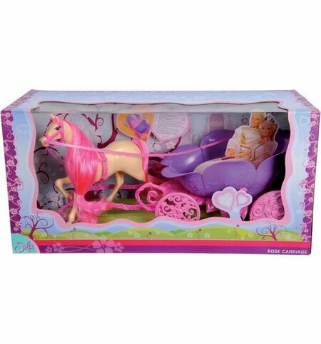 В такой карете, выполненной в форме цветка, Штеффи будет напоминать дюймовочку. Она отправится на встречу к своему прекрасному принцу. Сопровождать ее сможет еще одна куколка Штеффи. Ваша девочка с удовольствием отправится с ними в сказочное путешествие и позовет с собой своих подруг. Этот набор отлично подходит для сюжетно-ролевых игр ребенка, он будет способствовать развитию фантазии и хорошего вкуса.