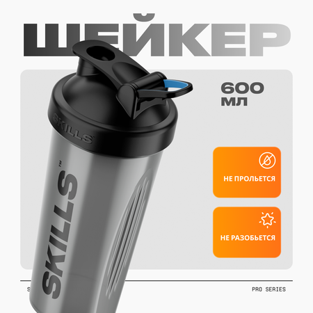 Фирменный спортивный шейкер SKILLS 600 мл отлично подойдёт для употребления спортивного питания. Это незаменимая вещь для спортсменов. Бутылочка для воды SKILLS сделана из прочного и безопасного пластика, который не впитывает запахи продуктов, а сеточка, входящая в комплектацию, помогает доводить спотривное питание протеин и гейнер до идеальной консистенции. Лёгкость и компактность шейкера даёт возможность брать его с собой в тренажерный зал, на прогулку, для бега, в дорогу и путешествие! На крышке расположена удобная петелька для переноски спортивного шейкера. Идеально подойдет как подарок девушке, парню, мужу, жене, детям. Бутылка легко моется и не впитывает запахи. На мерном стакане расположена шкала с количеством жидкости. В комплектацию шейкера входит: бутылка (600мл), крышка с клапаном и петлёй для переноски, сеточка для взбивания.