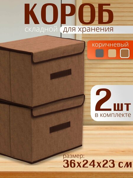 Коробка для хранения складная с крышкой набор 2 шт 30 л ящик стеллажный органайзер из нетканого полотна 36х24х23 см