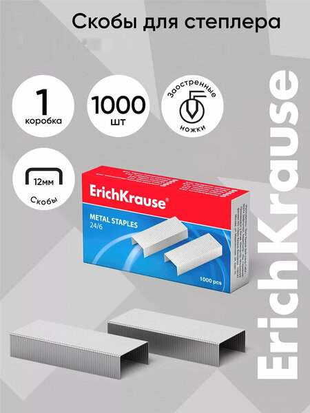 Скобы ErichKrause №10 предназначены для использования в канцелярских степлерах (маленький)