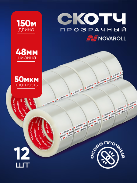 Скотч прозрачный, ширина 48мм, длина 150 м, комплект 12 штук