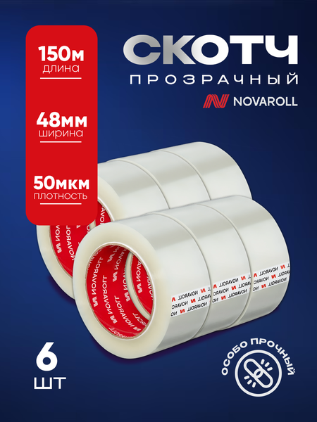 Скотч прозрачный Novaroll, ширина 48мм, длина 150 м, комплект 6 штук
