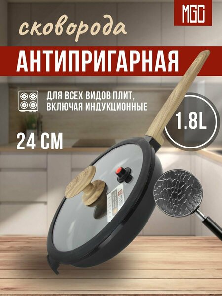 Сковорода MGC 24 см с керамическим покрытием – премиальный уровень готовки Представляем универсальную антипригарную сковороду 24 см от премиального бренда MGC. Современные технологии и элегантный дизайн делают эту модель идеальным выбором для тех, кто ценит качество, удобство и долговечность. Ключевые преимущества: Высококачественное керамическое покрытие – предотвращает прилипание пищи, позволяет готовить с минимальным количеством масла. Уникальная текстура – внешний корпус выполнен с эффектом кожи крокодила, подчеркивая премиальный статус посуды. Толстые стенки и дно – 5-6 мм обеспечивают равномерное распределение тепла, предотвращая перегрев и пригорание. Подходит для всех типов плит – совместима с газовыми, электрическими, керамическими и индукционными варочными поверхностями. Эргономичная деревянная ручка – удобный хват, стильное исполнение и защита от перегрева. Прозрачная крышка с пароотводом – позволяет контролировать процесс приготовления, сохраняя вкус и полезные свойства продуктов. Почему стоит выбрать именно эту сковороду? Стильный дизайн – сочетание премиальных материалов и современных технологий. Простота в уходе – легко очищается, достаточно мягкой губки без абразивных чистящих средств. Экологически безопасные материалы – не выделяют вредных веществ, полностью безопасны для здоровья. Долговечность – устойчива к повреждениям, высоким температурам и износу. Сковорода MGC 24 см – это лучший выбор для комфортного и стильного приготовления блюд. Добавьте в корзину прямо сейчас и создавайте кулинарные шедевры с удовольствием!