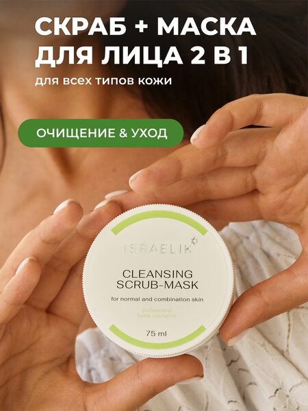 Профессиональный скраб маска для лица ISRAELIK 2 в 1 -это уникальное средство двойного действия, объединяющее преимущества мягкого скраба и очищающей маски. Продукт разработан специально для эффективного очищения, деликатного отшелушивания и интенсивного ухода за кожей лица, особенно жирной, комбинированной и склонной к воспалениям. Скраб для лица с соляными компонентами и натуральными маслами бережно удаляет ороговевшие клетки, способствует глубокому очищению пор, устраняет черные точки и жирный блеск, а также выравнивает рельеф и улучшает цвет лица. Его можно использовать как скраб от черных точек или оставить на коже на несколько минут как маску против воспалений, усиливая очищающее и противовоспалительное действие. Эта очищающая скраб-маска для лица обладает органической формулой и подходит как для женщин, так и мужчин, обеспечивая универсальный уход за лицом независимо от возраста. Особенно эффективно средство работает на жирной, проблемной и нормальной коже, не пересушивая её и не вызывая раздражений. Также может использоваться как женский скраб для лица и тела, особенно на зонах с неровной текстурой кожи. Благодаря комплексному воздействию, скраб маска для лица от бренда ISRAELIK помогает восстановить баланс кожи, снизить проявление несовершенств, подготовить кожу к нанесению уходовых средств и поддерживать её здоровье в условиях городского ритма. Это средство легко станет частью еженедельного ухода -особенно в периоды смены сезонов, когда кожа нуждается в особом внимании. Если вы ищете израильскую косметику для лица с профессиональным эффектом, которая совмещает комфорт, натуральный состав и видимый результат уже после первых применений, скраб-маска ISRAELIK -идеальный выбор для комплексного очищения и сияния кожи