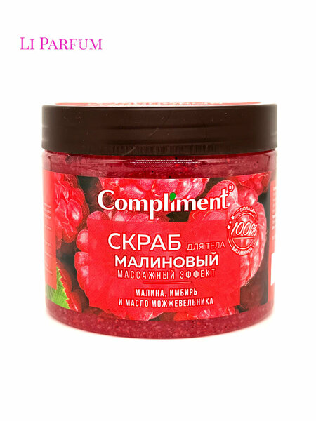 Скраб для тела Compliment® Малиновый с массажным эффектом – это настоящее удовольствие для кожи и эффективный способ ухода за телом в домашних условиях. Насыщенная формула с экстрактом спелой малины, имбирем и маслом можжевельника деликатно отшелушивает омертвевшие клетки, улучшает микроциркуляцию и придает коже свежесть, мягкость и ухоженный вид. Активные компоненты способствуют выведению токсинов, стимулируют обновление клеток и помогают бороться с признаками усталости и тусклости кожи. Регулярное использование скраба обеспечивает лифтинг-эффект, упругость и шелковистость кожи, а нежный аромат малины делает каждое применение настоящим SPA-ритуалом. Как использовать Нанесите небольшое количество скраба на влажную кожу тела. Массируйте круговыми движениями, уделяя особое внимание проблемным зонам (бедра, ягодицы, живот). Смойте теплой водой. Для максимального эффекта используйте 2–3 раза в неделю.