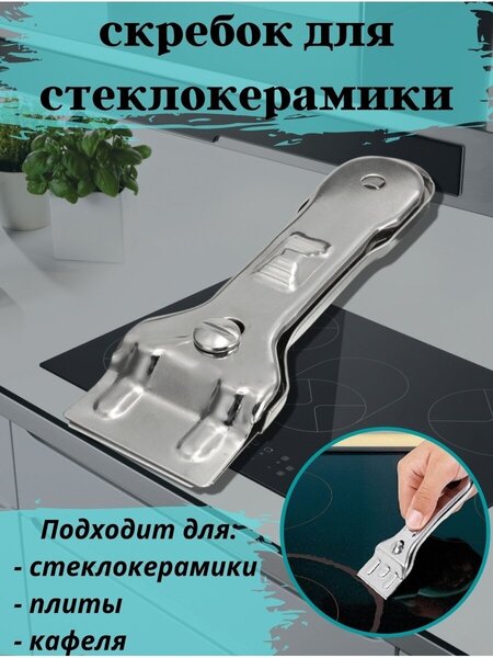Скребок для стеклокерамических плит предназначается для очистки стеклокерамики, кафельных или стеклянных поверхностей от засохшей или пригоревшей грязи. Регулярное использование скребка позволяет сэкономить время и силы, которые требуются для ухода за поверхностью, также это продлевает сроки эксплуатации плит. Скребок для плиты - необходимый аксессуар для дома, который позволит Вам легко и эффективно убирать любые загрязнения с поверхности плиты. Наш скребок - это хозяйственный товар, который подходит для чистки стекол, кафеля, а также для индукционной плиты, стеклокерамики и варочных панелей. Специально разработанное средство для стеклокерамики поможет легко и быстро удалять жир, пятна и другие загрязнения без повреждения поверхности. Скребок для керамической плиты также подходит для индукционных плит, а так же для мытья окон и других поверхностей в доме, включая керамические плиты. Для безопасности двухстороннее сменное лезвие имеет специальный предохранитель, оно выдвигается и фиксируется, что обеспечивает безопасность не только при использовании, но и при хранении изделия. Также может использоваться как средство для удаления скотча, клея от тонировки на стеклах. Скребки для уборки дома — это новинки среди товаров для кухни. Теперь у вас есть все для дома! Скребок для чистки плиты не царапает поверхность. Скрапер подходит для удаления клея и для тонировки. Скребок может быть опасным для детей, храните изделие в недоступном для них месте. Во время мытья и при смене лезвий соблюдайте осторожность. Изготовлено из коррозионностойкой стали. Размеры: скребок 13,5х4,5 см, лезвие 4,3х2,2 см. Скребки для стеклокерамических плит - незаменимое приспособление для всех, у кого установлена современная плита, есть кафель и другие ровные поверхности.
