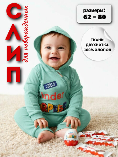 Мягкий трикотажный материал Ровные швы Удобная и комфортная одежда Для домашней носки Удобные застежки позволяют легко переодевать ребенка одежда для новорожденных, комбинезон на молнии, слип с шапочкой, боди для малышей, человечек хлопок, слип для девочки, комбинезон для мальчика, комплект на выписку, одежда для фотосессии малышей, костюм морковки для ребенка, киндер сюрприз одежда. детская одежда для дома, для прогулок, для сна (пижама), в подарок, на праздник, для фотосессии по месяцам. Drakosha Kids: первые стильные и уютные вещи для малышей! ✨ Сделайте каждый момент взросления вашего малыша незабываемым! Наши слип-комбинезоны — это идеальное сочетание комфорта, безопасности и трендового дизайна. Отличный выбор для сна, активных игр и популярных «ежемесячных фотосессий» (1, 2, 3… 12 месяцев). ✨ В нашей коллекции представлены 2 вида моделей (смотрите фото цветов): Серия «Comfort & Hood» (на молнии): Яркие комбинезоны с глубоким капюшоном (Kinder, KitKat и др.). Косая молния с защитой подбородка позволяет одеть малыша всего за 15 секунд! Серия «Style & Hat» (на кнопках): Очаровательные комплекты «слип + шапочка с ушками» (Морковка, Винни и др.). Кнопки по всей длине делают смену подгузника максимально удобной. Почему родители выбирают Drakosha Kids: Натуральный состав: 100% хлопок (двунитка и интерлок). Ткань «дышит», не вызывает аллергии и сохраняет тепло. Комфорт в каждой детали: мягкие манжеты, плоские швы и безопасные принты. Свободный крой не сковывает движения маленького исследователя. Идеально для фото и видео: принты «Kinder Surprise», «Морковка», «Винни» созданы для незабываемых кадров. Отличный подарок: на выписку из роддома, «бешик той» или день рождения. Размерная сетка (рост ребёнка): 62 — 1–3 мес | 68 — 3–6 мес | 74 — 6–9 мес | 80 — 9–12 мес Внимание: комплектация и тип застёжки зависят от выбранного цвета. Ориентируйтесь на фотографии модели. Drakosha Kids — одежда счастливого детства!