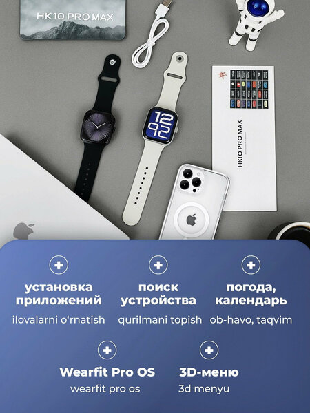 ✅Очень качественный экран Super AMOLED. ✅ 2 силиконовых ремешка, прокладка и дополнительный ремешок в подарок ✅Поддерживает ответ на вызовы жестами рук без нажатия кнопки вызова на часах или мобильном телефоне. ✅ Имеет музыкальный проигрыватель и множество песен ✅Новый режим «Всегда на дисплее» аналогичен исходному. ✅ Есть App Market для скачивания игр и программ из программы ✅ Поддерживает Gpt-чат ✅ Вы можете зарегистрировать большое количество имен, а не 8 имен за один час ✅Поддерживает размещение собственного фона на циферблате и внутри меню. ✅У него совершенно новый фон AppleWatch Ultra 2. ✅ Поддерживает все уведомления ✅ На него можно записать Будет отличным подарком на Новый год или другие праздники. Посетите наш магазин и добавьте его в избранное, чтобы увидеть весь ассортимент и быть в курсе новинок. Загрузите фотографии на часы, подключив Wearfit pro. Поддержка записи голоса. Добавлены обои с чувствительным к гравитации циферблатом, что более интересно. Добавлены обои с чувствительным к гравитации циферблатом, Поддерживает управление жестами для ответа на вызовы. Поднимите запястье, чтобы включить подсветку экрана. Закройте экран и выключите его. Поддерживает настройку 6 стилей часов для работы вне экрана. Цвета часов доступны в глянцевом черном и глянцевом серебре. Поддержка AI ChatGPT. С помощью We Wearfit Pro вы можете загружать на свои часы дополнительные приложения. На экране появится красная точка, обозначающая непрочитанное сообщение. Вспомогательный компас. Кроме того, часы позволяют следить за своим здоровьем. Можно использовать как фитнес-браслет при занятиях спортом, походах и путешествиях. Кроме того, устройство водонепроницаемо, поэтому вы можете хранить его во время мытья рук и использовать во время уборки, работы или путешествия. Умный и полезный аксессуар для ваших близких на день рождения. Умные часы HK10 Pro Max — это новейшая версия часов 10-й серии, в которой добавлены более мощные функции: 2 ГБ локальной памяти. Загрузите музыку на часы, подключив Wearfit Pro, а часы также поддерживают подключение наушников Bluetooth для воспроизведения локальной музыки. Благодаря встроенным динамикам и микрофонам они принимают звонки и уведомления из всех доступных мессенджеров, а отвечать на звонки можно одним касанием экрана.