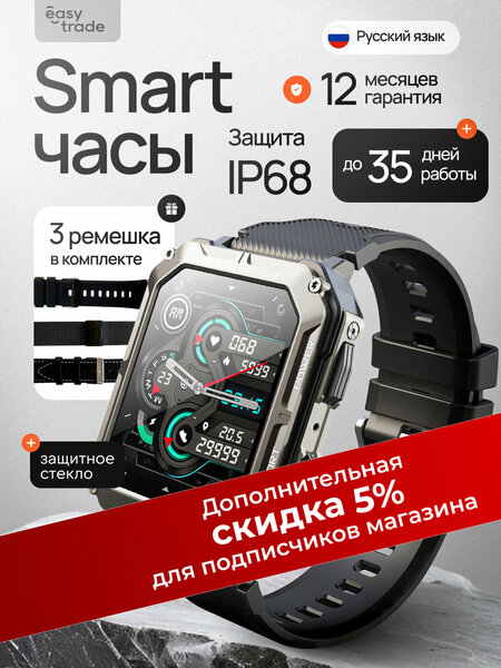 Погрузитесь в мир технологий с нашими смарт часами мужскими! Эти умные часы готовы стать вашим идеальным спутником в повседневной жизни и на тренировках. Стильный и современный дизайн делает часы смарт идеальными не только для спорта, но и для работы или отдыха. Благодаря высокоточным сенсорам, вы сможете следить за своим здоровьем и физической активностью, превращая каждую тренировку в эффективное занятие. Наши смарт часы мужские водонепроницаемые и противоударные обеспечивают надежную защиту в любых условиях. Вы можете не опасаться попадания влаги или механических повреждений, занимаясь спортом или отдыхая у водоема. Умные часы мужские также обладают функцией подключения к интернету, что позволяет получать уведомления и оставаться на связи в любое время. Часы наручные смарт оборудованы множеством функций. Эти фитнес часы мужские помогут вам достичь ваших целей по улучшению физической формы. Не забывайте, что наши смарт часы для андроид и смарт часы для iphone легко синхронизируются с вашим смартфоном. Купите смарт часы мужские и позвольте себе насладиться всеми преимуществами современных технологий. Убедитесь сами, что умные часы мужские делают вашу жизнь более удобной и продуктивной. Не упустите шанс! Закажите свои смарт часы мужские и начните новую жизнь уже сегодня!