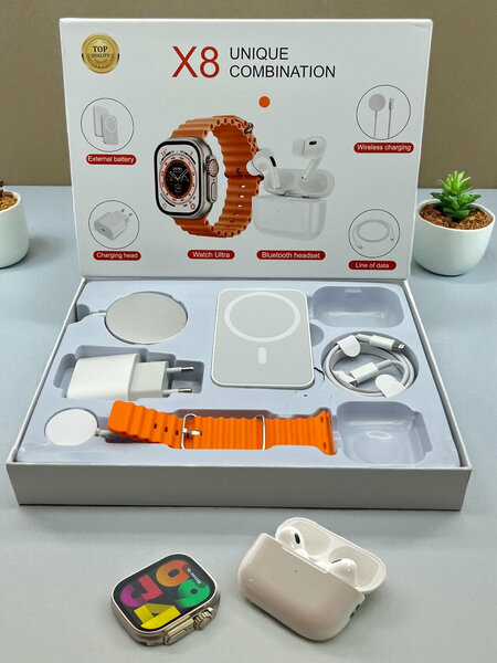 Умные часы Smart Watch Ultra в комплекте с беспроводными наушниками Pods Pro. 8 сменных ремешков в наборе. Современный дизайн и удобство в использовании. Поддержка уведомлений, звонков и отслеживания ежедневной активности. Отличный выбор для повседневного использования и в подарок! Умные часы Smart Watch Ultra в комплекте с беспроводными наушниками Pods Pro. 8 сменных ремешков в наборе. Современный дизайн и удобство в использовании. Поддержка уведомлений, звонков и отслеживания ежедневной активности. Отличный выбор для повседневного использования и в подарок! Современные умные часы Smart Watch 8 Ultra для мужчин и женщин. Чувствительный 2-дюймовый IPS экран, мониторинг пульса и кислорода в крови, мультиспортивный режим и поддержка беспроводной магнитной зарядки. Совместимы с iPhone и Android через приложение Olywear. Силиконовый ремешок подходит на любую руку. В комплекте беспроводные наушники Pods Pro и 8 сменных ремешков.