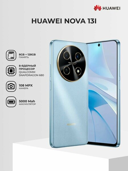 Смартфон Huawei Nova 13i 8/128G Blue - это мощное устройство, которое предлагает пользователям широкий спектр функций и возможностей. Его диагональ экрана составляет 6.7 дюйма, а разрешение - 2388x1080 пикселей, что обеспечивает высокую четкость изображения и отличную производительность.