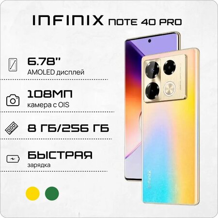 Смартфон Infinix Note 40 Pro 8/256 ГБ – это современное устройство, которое сочетает в себе передовые технологии и стильный дизайн. Смартфон оснащен мощным процессором MediaTek Helio G99 Ultimate с 8 ядрами, что обеспечивает высокую производительность и быстродействие. Оперативная память составляет 8 ГБ, а встроенная память – 256 ГБ. Это позволяет хранить большое количество данных и приложений, а также обеспечивает возможность расширения памяти с помощью карты памяти. Смартфон имеет 6.78-дюймовый AMOLED-экран с разрешением 2436x1080 пикселей и частотой обновления 120 Гц. Экран обладает сенсорным управлением и устойчив к царапинам, что гарантирует долгий срок службы устройства. Основная камера смартфона имеет разрешение 108 МП и состоит из трех модулей: 6-элементная линза, PDAF и OIS. Это позволяет делать четкие и яркие фотографии в любых условиях освещения. Фронтальная камера имеет разрешение 32 МП и поддерживает автофокусировку и тыловую вспышку. Смартфон поддерживает стандарты связи 3G, 4G LTE и Wi-Fi 802.11ac. Беспроводные интерфейсы включают NFC, Bluetooth и Wi-Fi. Устройство оснащено GPS, A-GPS, Galileo, ГЛОНАСС и BeiDou навигационными системами. Смартфон имеет классический корпус из поликарбоната и степень защиты IP54. Аккумулятор емкостью 5000 мА⋅ч обеспечивает длительное время работы устройства. В комплект поставки входят блок питания, кабель, чехол, защитная пленка, защитное стекло, гарантийный талон, инструкция и булавка для сим-карты.