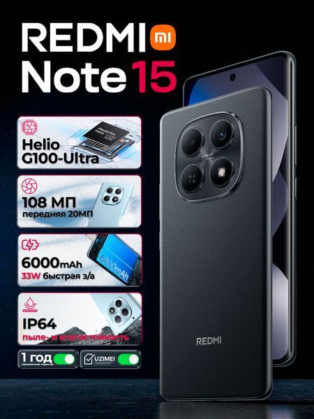 {"widgets":{"@card/StickyOffer":{"/content/page/fancyPage/defaultPage/stickyProductCard":{"view":"small","tag":"span","isRobot":false,"isM2b":false,"isMultilangPage":false,"userLanguage":"ru"}}},"meta":{"/content/page/fancyPage/defaultPage/stickyProductCard":{"name":"@card/StickyOffer"}},"collections":{"questionStats":{"1425015745470473945":{"questionsCount":0}},"miniImage":{"1425015745470473945":{"image":"mi_17607459300840384759","moreThanOne":true}},"offerAnalytics":{"1425015745470473945":{"showUid":"17716883256042206943106001","promoAttributes":[{"shopPromoId":"cf_bp_1000325","promoType":"unknown","promoKey":"qnMAt4qIJfIsmldjHOyQWg"},{"shopPromoId":"L21237533","promoType":"empty-promo","promoKey":"1sJxWLZ2eW_J0izS9YeeLA","parentPromoId":""}],"wareId":"lj6uSdOoMJ4FsSaWiwRWjQ","modelId":"5027112655","marketSku":"5027113783","paymentMethodTypes":["deliverycard","deliverycash","prepaymentcard"],"isCrossBorder":false,"isOnDemand":true,"isSponsored":false,"skuId":"5027113783","oskuId":"5027113783","marketSkuCreator":"market","price":2869000,"oldPrice":3569000,"merchPrice":3569000,"vendorId":7701962,"hid":91491,"nid":34512430,"isDigital":false,"deliveryPartnerTypes":["YANDEX_MARKET"],"offerColor":"blue","productId":732145359,"feedId":56266786,"availableCount":3,"shopId":431782,"supplierId":212522031,"shopSku":"6932554475932","isExpress":false,"deliveryOptions":[{"partnerType":"market_delivery","dayFrom":1,"dayTo":1,"price":0}],"warehouseId":311,"isBnpl":true,"isInstallments":false,"businessId":"188964913","paymentTypes":["POSTPAYMENT","PREPAYMENT"],"benefit":{"type":"waremd5","isPrimary":true,"description":"Хорошая цена от надёжного магазина"},"yandexBnplInfo":{"enabled":true},"isBondAvailable":false,"allDeliveryOptions":[{"price":0,"partnerType":"market_delivery","dayFrom":1,"dayTo":1,"type":"DELIVERY"}],"isDSBS":false,"promos":[{"key":"qnMAt4qIJfIsmldjHOyQWg","type":"unknown","shopPromoId":"cf_bp_1000325","landingUrl":"https://market.yandex.ru/special/blocking-promo-landing?shopPromoId=cf_bp_1000325","isPersonal":false,"description":"Отключение магазинов по ID промо от ДЦО. Узбекистан"},{"key":"1sJxWLZ2eW_J0izS9YeeLA","type":"empty-promo","shopPromoId":"L21237533","landingUrl":"https://market.yandex.ru/special/empty-promo-landing?shopPromoId=L21237533","isPersonal":false,"description":"Промокод_для_колеса_дек_Узбекистан_ручка_200000сум_от_1500000_2611"}],"prices":{"price":{"value":2869000,"currency":"UZS"},"priceWithoutVat":{"value":2561607,"currency":"UZS"},"discountedPrice":{"price":{"value":2869000,"currency":"UZS"},"discount":{"value":700000,"currency":"UZS"},"percent":20}},"supplierType":"3","pp":200,"gci":"5027113783","title":"Смартфон Redmi Note 15 4G, 108 MP + 20 MP камера, 6000 мАч 33 Вт, AMOLED 120 Гц, IP64"}},"outOfStock":{},"productQuestionsLink":{"1425015745470473945":{"isResale":false,"count":0,"transitionId":"tr_236688989522706554"}},"price":{"1425015745470473945":{"mainPrice":{"price":{"value":2869000,"currency":"UZS"},"type":"discount"},"oldPrices":[{"price":{"value":3569000,"currency":"UZS"},"type":"withoutDiscount"}],"absoluteDiscount":{"value":700000,"currency":"UZS"},"discountPercent":20,"isPersonalDiscount":false,"snippetPrice":{"actualPrice":{"amount":{"intPart":"2869000","currency":"UZS"},"style":"RED","type":"OTHER_DISCOUNT"},"oldPrice":{"amount":{"intPart":"3569000","currency":"UZS"},"style":"STRIKETHROWED"}}}},"businessReviewStats":{},"titleV2":{"1425015745470473945":{"vendor":{"name":"Xiaomi","transition":{"type":"search","params":{"vendorSlug":"xiaomi","vendorId":"7701962","vendorName":"Xiaomi","vendorFilter":"7893318:7701962","fakeCategorySlug":"mobilnyye-telefony-xiaomi","categoryId":"91491","navnodeId":"34512430"}},"logoUrl":"https://avatars.mds.yandex.net/get-mpic/11549745/img_id3587605827464889063.png/orig"},"title":"Смартфон Redmi Note 15 4G, 108 MP + 20 MP камера, 6000 мАч 33 Вт, AMOLED 120 Гц, IP64","style":"oneLine"}},"vendor":{},"metaTitle":{}}}