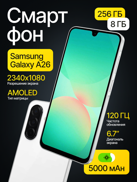 {"widgets":{"@card/ReviewItem":{"/content/page/fancyPage/defaultPage/galleryPopup/reviewItem":{"isMaster":false,"composeId":null,"index":0,"isAuth":false,"theme":"galleryReview","dynamic":true,"pageParams":{"slug":"smartfon-samsung-galaxy-a26-8256gb-dual-sim-nfc-67-android-15","oskuId":"4794909647"},"pageId":"market:product-osku","isMultilangPage":false,"userLanguage":"ru","isRobot":false}}},"meta":{"/content/page/fancyPage/defaultPage/galleryPopup/reviewItem":{"name":"@card/ReviewItem"}},"collections":{"productCardMeta":{},"reviewComment":{},"reviewCommentState":{},"commentList":{},"commentItems":{},"answerForm":{},"reviewGalleryPopupState":{},"reviewOfferInfo":{}}}{"widgets":{"@card/FullGalleryPopupRedesign":{"/content/page/fancyPage/defaultPage/galleryPopup":{"isOpen":false,"currentIndex":0,"bottomSafeArea":28,"viewType":"GALLERY","isAuth":false}}},"meta":{"/content/page/fancyPage/defaultPage/galleryPopup":{"name":"@card/FullGalleryPopupRedesign"}},"collections":{"oskuReviewSnippet":{},"publicReview":{},"i18n":{"translations":{"common.gallery:all_photo_and_video":"Все фото и видео","common.gallery:more_items":"ещё {{count}}","common.gallery:scale":"Увеличить","common.gallery:ugc_gallery_title":"Фото и видео от покупателей"}}}}