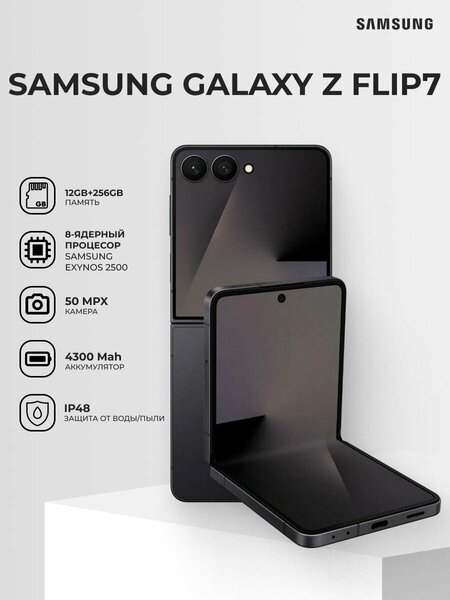 Смартфон Samsung Galaxy Z Flip7 5G 256GB SM-F766BZKGSKZ Jet Black - это современное устройство, которое сочетает в себе передовые технологии и стильный дизайн. Смартфон оснащен процессором Samsung Exynos 2500 с частотой 3300 МГц и 10 ядрами, что обеспечивает высокую производительность и быстродействие. Видеопроцессор Samsung Xclipse 950 гарантирует плавную и четкую картинку. Устройство имеет 12 ГБ оперативной и 256 ГБ встроенной памяти, что позволяет хранить большое количество данных и приложений. Смартфон поддерживает карты памяти, но слот для них отсутствует. Смартфон имеет 6.5-дюймовый Dynamic AMOLED 2X экран с разрешением 2520x1080 пикселей и частотой обновления 120 Гц. Это обеспечивает яркую и четкую картинку, а также быстрый отклик на касания. Смартфон оснащен двумя основными камерами: 50 МП и 12 МП. Фронтальная камера имеет разрешение 10 МП. Оптическая стабилизация и автофокус помогут сделать качественные снимки. Смартфон поддерживает стандарты связи 3G, 2G, 4G LTE, а также Wi-Fi 802.11be и Bluetooth 5.4. Емкость аккумулятора составляет 4300 мАч, что обеспечивает продолжительное время работы устройства. Смартфон поддерживает быструю зарядку и беспроводную зарядку. Смартфон имеет стереодинамики, акселерометр, барометр, гироскоп, датчик Холла, датчик освещенности, датчик приближения и другие функции. Смартфон имеет черный цвет и весит 188 грамм. Размеры в сложенном виде составляют 85.5 x 75.2 x 13.7 мм. В комплекте с устройством идет USB-C кабель для зарядки и синхронизации, а также руководство пользователя. Выбирая смартфон Samsung Galaxy Z Flip7 5G 256GB SM-F766BZKGSKZ Jet Black, вы получаете современное и функциональное устройство, которое станет незаменимым помощником в повседневной жизни.