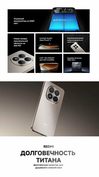 Redmi Note 15 Pro 5G — это смартфон для тех, кто хочет максимум: флагманскую камеру, сверхчёткий экран, поддержку 5G, высокую автономность и интеллектуальные технологии в одном премиальном устройстве.