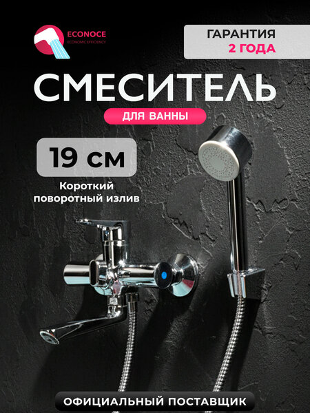 Смеситель для ванны с душем ECONOCE 400 EC0402 короткий поворотный излив
