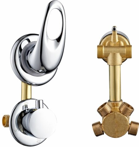 Качественный встраиваемый смеситель для душевой кабины в сборе Предназначен для переключения четырех режимов Меж осевое расстояние 100мм Крепления выводов гайка.