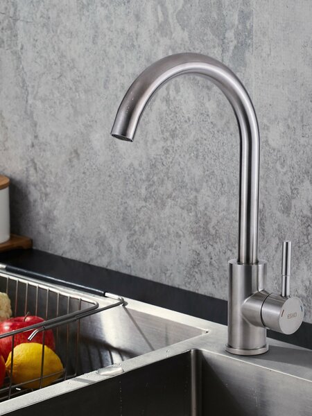 Смеситель для кухни ESKO K4 нержавеющая сталь, поворотный излив