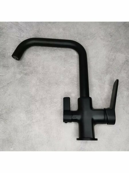 Обратите внимание на поворотный смеситель для кухни с подлючением фильтра для водыFRAP F4362. Удобство этой модели заключается в том, что в одном корпусе с современным дизайном конструкторы поместили обычный смеситель с подведением горячей и холодной воды и смеситель от фильтра для питьевой воды. В комплекте три гибкие подводки длиною 450 ммс полудюймовыми гайками. Корпус из латуни в черном цвете однорычажный переключатель воды, керамический дисковый картридж Ф 35 мм, поворотный излив - далеко не все положительные стороны модели. Вам нет необходимости делать дополнительное отверстие под кран с питьевой водой.