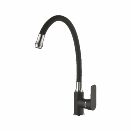 A4082-7 смеситель для кухни с гибким изливом, H=375 мм чёрный/хром латунь картридж D=35 мм излив H=215 мм гибкая подводка: 450 мм в комплекте крепёж: гайка