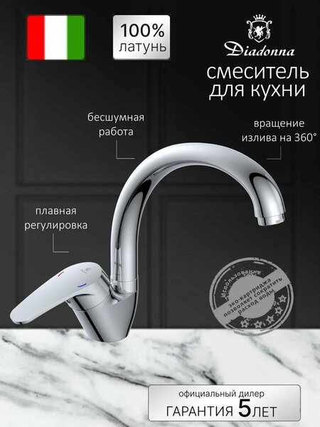 Смеситель Diadonna, для кухни, латунь, рычажное управление, поворотный излив