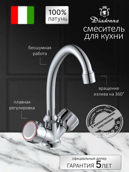 Смеситель Diadonna, латунь, хром, для кухни, аэратор, поворотный излив