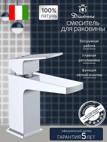 Смеситель для раковины Diadonna, латунь, керамический картридж, короткий излив