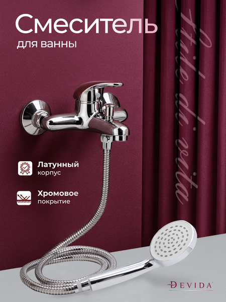 Смеситель для ванны с душем с коротким изливом DEVIDA / Код 15407