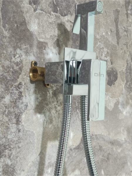 Встроенный смеситель для биде с держателем. Встраиваемый смеситель с гигиеническим душем для биде позволяет легко регулировать напор и температуру воды с помощью однорычажного управления. Гигиенический душ со смесителем черный матовый для унитаза монтируется непосредственно внутрь стены, это позволяет скрыть узлы и элементы, а помимо этого спрятать дефекты монтажа. Настенные смесители оснащаются выходом на душевой шланг и лейку. Основной материал данного прибора - латунь, это надежный материал, гарантирующий качественное нанесение хромированного покрытия. Модель стилизованной квадратной формы, не имеет излива. Монтаж представленной модели производится на одно отверстие под смеситель.