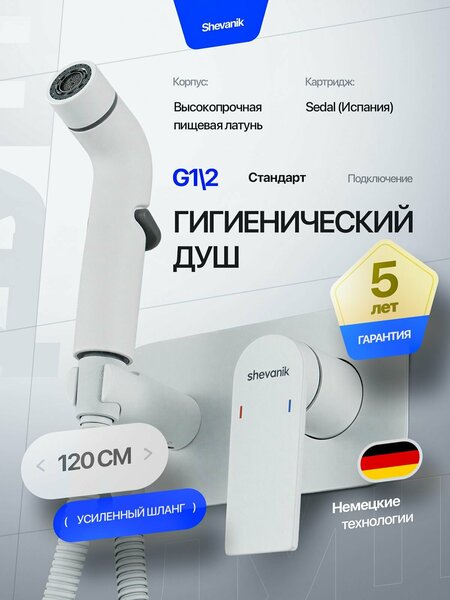 Гигиенический душ со смесителем скрытого монтажа для унитаза/биде: латунь, внутренняя часть в комплекте. Шланг 120 см, G1/2. Лейка с курком и регулировкой напора. Цвет — в вариантах. Преимущества • Гигиенический душ скрытого монтажа: аккуратный внешний вид, скрытая установка в стену, минимум деталей снаружи. • Гигиенический душ со смесителем (встраиваемый смеситель): регулировка температуры и напора как у обычного смесителя. • Латунный корпус: устойчив к коррозии и влажности, рассчитан на ежедневное использование. • Для унитаза и для биде: душ-биде помогает поддерживать гигиену и экономит место в небольшом санузле. • Гигиеническая лейка с регулировкой напора: включение/выключение воды на лейке, контроль струи. • Шланг 120 см: комфортная длина для использования рядом с унитазом. • Покрытие: 5 цветовых вариантов — выберите нужный в карточке. Комплектация Смеситель скрытого монтажа (внутренняя часть + внешняя часть), гигиеническая лейка с курком, шланг 120 см, держатель/крепление. Гарантия Корпус — 5 лет; картридж — 3 года; шланг, держатель, лейка — 1 год. Совместимость и установка Стандарт подключения G1/2 (1/2"). Подходит для типовой разводки в санузле и установки возле унитаза; используется как гигиенический душ для унитаза скрытого монтажа и как душ-биде (для биде). Монтаж настенный (в стену); после установки проверьте герметичность соединений. Кому подойдёт • Квартирам с небольшим санузлом, где нет места для отдельного биде. • Семьям с детьми и всем, кому важны гигиенические процедуры дома. • Для уборки санузла и точечной мойки без лишних брызг. • Для тех, кто выбирает надёжный встраиваемый комплект из латуни. Правила безопасного использования После использования всегда перекрывайте смеситель гигиенического душа. Затем коротко нажмите на курок лейки, чтобы сбросить остаточное давление. Не оставляйте лейку под давлением — это продлевает срок службы и снижает риск протечек.