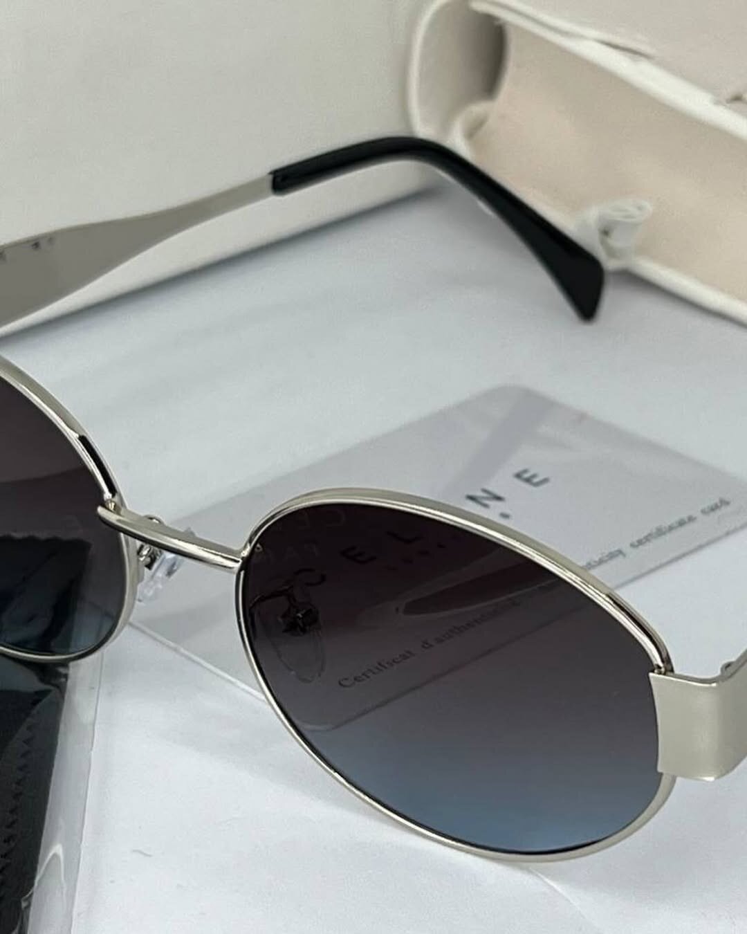 Элегантность и характер в каждой детали Погрузитесь в мир утончённой моды с этими роскошными солнцезащитными очками, которые идеально сочетают в себе современный минимализм и винтажное вдохновение. Овальная форма линз подчёркивает выразительность взгляда и придаёт лицу мягкие, гармоничные очертания. Линзы с глубоким затемнением не только защищают глаза от ультрафиолетовых лучей, но и создают загадочный, уверенный образ. Особого внимания заслуживает изысканная оправа: утончённые металлические дужки с благородным блеском и плавными переходами создают ощущение лёгкости и стиля. Плавная линия переносицы делает модель сбалансированной и комфортной для повседневного ношения. Эти очки станут ярким акцентом в любом образе — от городского casual до элегантного вечернего наряда. Идеальны для тех, кто ценит стиль, уверенность и индивидуальность.