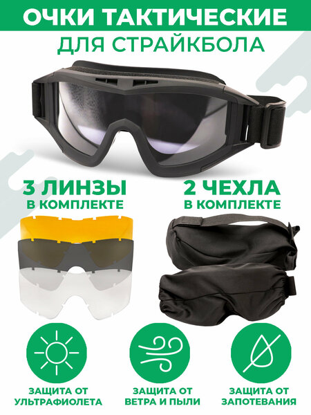 Очки тактические — идеальный выбор для настоящих любителей стрельбы и активных видов спорта. Незаменимы для охоты, страйкбола или пейнтбола, эти стрелковые очки обеспечат вам безопасность и комфорт даже в самых экстремальных условиях. Эти очки для стрельбы оснащены тремя сменными линзами, что позволяет адаптироваться к различным условиям освещения и погодным условиям. Все линзы обладают противоосколочными свойствами, гарантируя надежную защиту глаз от механических повреждений и осколков. Такой уровень безопасности делает их превосходным решением для использования как в профессиональных, так и в любительских целях. Тактические очки выполнены из высококачественных материалов, что обеспечивает длительный срок службы и устойчивость к воздействию внешних факторов. Благодаря антибликовому покрытию, они снижают утомляемость глаз, позволяя вам сосредоточиться на цели в любой ситуации. Легкие и удобные, эти спортивные очки прекрасно сидят и не вызывают дискомфорта даже при длительном ношении. Борта и носовые упоры мягкие и эргономичные, что гарантирует плотное прилегание и стабильное положение очков на лице. Комплект включает в себя специальные баллистические линзы, которые предлагают максимальный уровень защиты при участии в военных тренировках или тактических операциях. Это делает данные очки незаменимым элементом вашего тактического снаряжения. Для удобства транспортировки и хранения в комплекте предусмотрен жесткий чехол, который надежно защищает ваши очки и линзы от повреждений и загрязнений. Выбирая очки для охоты и стрельбы, вы получаете надежный и многофункциональный продукт, который удовлетворит все ваши потребности, будь то страйкбол или профессиональная стрельба. Улучшите свои результаты и обеспечьте безопасность на высшем уровне с тактическими очками.