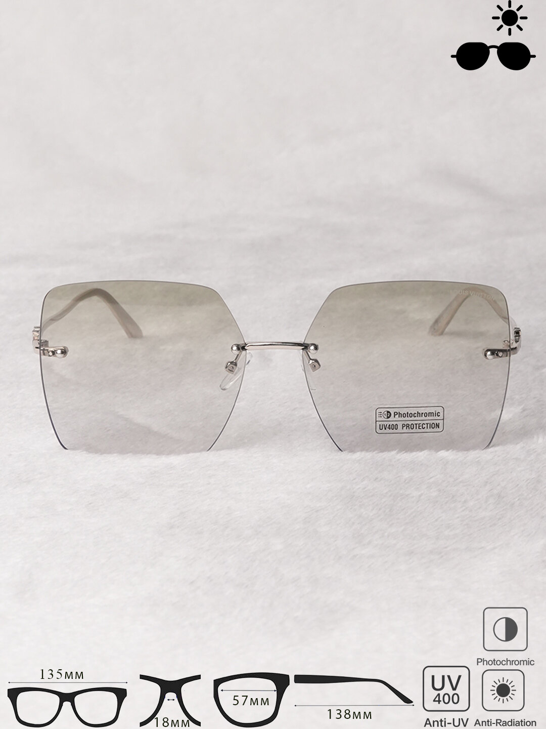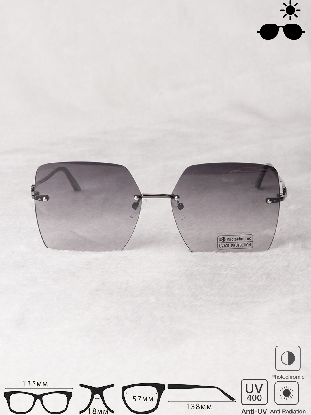 Солнцезащитные очки. Стильный аксессуар созданный для комфортного ежедневного ношения. Модель оснащена Photochromic эффектом Anti-Radiation защитой и UV400, а также благодаря управляемыми носоупорами обеспечивают удобную посадку и надёжную фиксацию на лице.