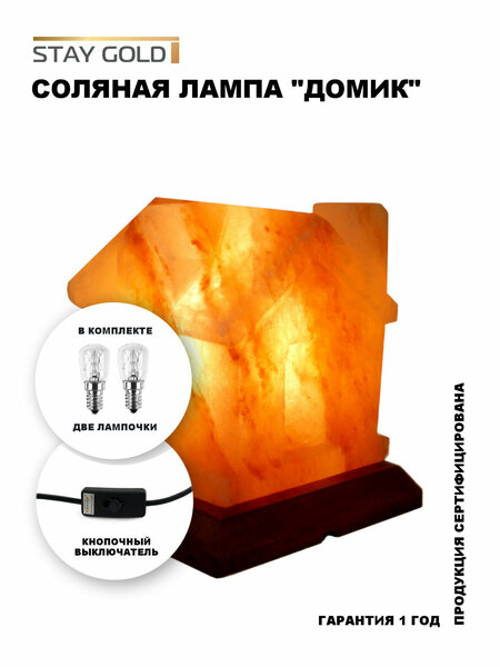 Солевая лампа- ночник "Домик с кнопочным выключателем" — это один из представителей коллекции декоративно-обработанных солевых ламп от бренда STAY GOLD. В нашей линейке вы найдете удивительные модели, такие как «Пирамида», «Сфера», «Ваза с камнями», «Роза», «Домик»,«Арома». Каждая лампа - ночник выполнена из натуральной гималайской каменной соли и установлена на подставке из розового дерева, что придаёт изделиям не только эстетическую привлекательность, но и долговечность. Светильники, созданные вручную из целого куска соли, добываются в шахтах Гималаев, расположенных на территории Пакистана на глубине сотен метров. Этот процесс требует высокой квалификации и внимания к деталям, что делает каждую лампу поистине уникальной. Цвета абажуров варьируются от нежно кремового до глубокого красного, а текстура может отличаться, создавая эффект слоистости и многообразия оттенков. Это означает, что каждая лампа становится настоящим произведением искусства, способным добавить изысканности в любой интерьер. Важно отметить, что на поверхности ламп могут присутствовать естественные выступы и даже может казаться присутствие трещин. Это не является дефектом, а скорее свидетельством того, что изделие создано природой миллионы лет назад. Такие особенности придают лампам индивидуальность и подчеркивают их натуральное происхождение, делая их ещё более привлекательными для ценителей уникальных вещей. Приобретая соляную лампу STAY GOLD, вы также можете выбрать удобную комплектацию выключателя: простой или с диммером, который позволяет регулировать яркость свечения лампочки в зависимости от вашего настроения или времени суток. Это делает лампу не только декоративным элементом, но и функциональным источником света, который создаст уютную атмосферу в вашем доме. Многочисленные отзывы покупателей, говорят о том что соляные лампы благотворно влияют на организм и воздух в помещении, но со своей стороны хотим отметить, что нет никаких подтверждающих документов о медицинской пользе соляных ламп. Мы никому терапевтический (лечебный) эффект не обещаем и на все вопросы покупателей отвечаем честно: «Клинических испытаний (многолетних исследований в данной области) никто не проводил. Во всем мире принято считать, что Солевые лампы из природной Гималайской каменной соли, благодаря своему химическому составу, являются натуральным источником ионизации воздуха». Соляная лампа — идеальный ночник благодаря своему мягкому свечению. Таким образом, коллекция соляных ламп от STAY GOLD — это не просто красивые предметы интерьера, но и полезные аксессуары, которые помогут вам создать уют и гармонию в вашем доме. Выбирайте свою идеальную лампу и наслаждайтесь её красотой и благоприятным воздействием на здоровье!