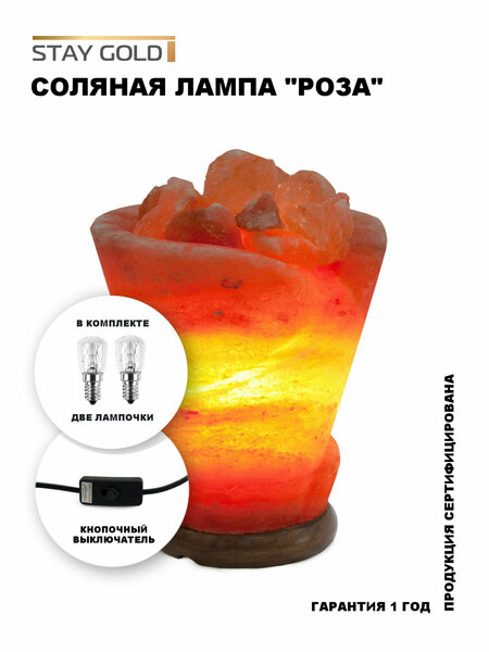 Представляем Вашему вниманию коллекцию декоративно-обработанных Соляных ламп от STAY GOLD: «Пирамида», «Сфера», «Ваза с камнями», «Роза», «Домик», «Кролик», «Слон» и «Ракушка». Соляная лампа из натуральной Гималайской каменной соли на подставке из Розового дерева идеально дополнит любой интерьер, прослужит Вам долгие годы и будет радовать Вас своим нестандартным исполнением. Абажуры изготовлены вручную из целого куска соли, добытой в шахтах Гималаев на территории Пакистана на глубине сотен метров. Каждый абажур уникален - имеет свои особенности: цвет абажура может отличаться от нежно кремового до темно красного, также соляной плафон может быть как будто слоями, несколько раз менять цвет и оттенки. Помимо этого, считается нормальным наличие выступов соли на поверхности ламп, может казаться присутствие трещин, но все это 100% качественная продукция - ТАК сделано самой природой миллионы лет назад. Приобретая Соляную лампу STAY GOLD, Вы можете выбрать комплектацию выключателя: простой и с диммером (регулировка яркости свечения лампочки).